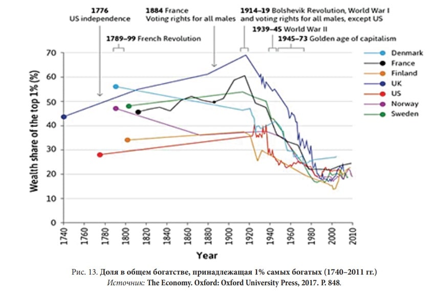 Что бросается в глаза? До 1917 года неравенство в основных западных странах (кроме скандинавских) только возрастало. "Капитал справлял свои оргии" (с).