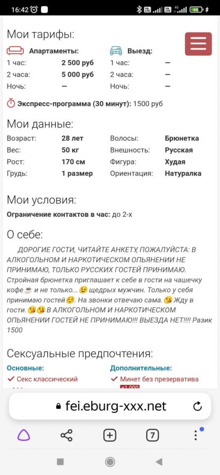 Анкета-дублёр данной девы, 100%, т.к. на фотке выше это она. В моё пребывание там той анкеты не было (сейчас вернулось), была эта и ещё какая-то и парочка анкет другой девы. Почти месяц сайт был не доступен, ни фоток, ни скринов вовремя не сделал. Позже заработало.