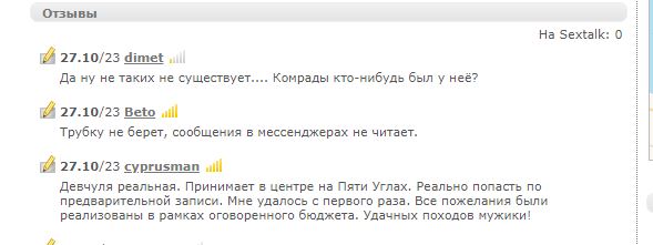 Списался на следующий день после появления анкеты. Ответила достаточно быстро. Локация - недалеко от Пяти Углов. Готова принять.
