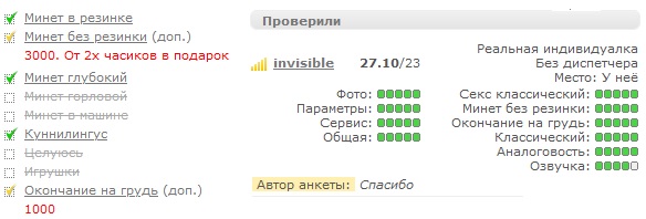Итого: Посексился с молодой, отзывчивой чикулей. Денег не жалко. Пробыл больше часа точно.
