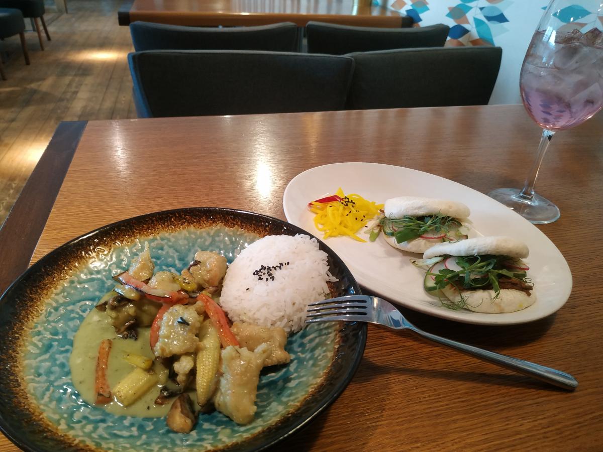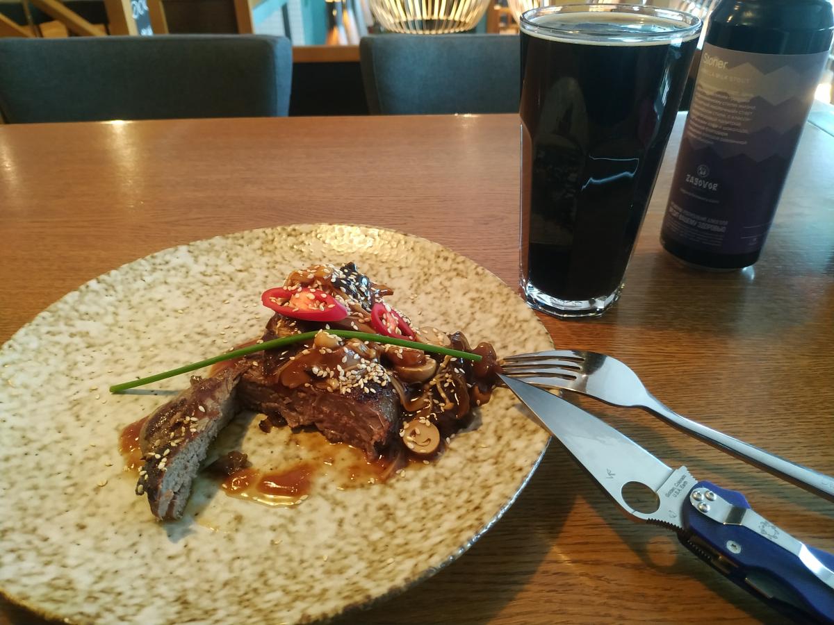 Следующий заход - подосрали настроение. Брал стейк из говядины за 1100р. Заказывал прожарку medium. Принесли КУСОК ВАРЁНОГО МЯСА! Сверху навалены грибы, водоросли, стеклянная лапша и порезанный чили! Извинились, принесли бокал пилзнера в подарок. Просто убили к хуям стейк. Помимо тунца на чипсах и пельменей с мясом понравились паровые булочки Бао с уткой (440р/2шт), куриное филе в зелёном карри с кокосовым молоком (730р). Ну и пожалуй всё , из того что было отведано. Коктейли средней паршивости, том ям просто обычный, бульон не очень нажористый.
