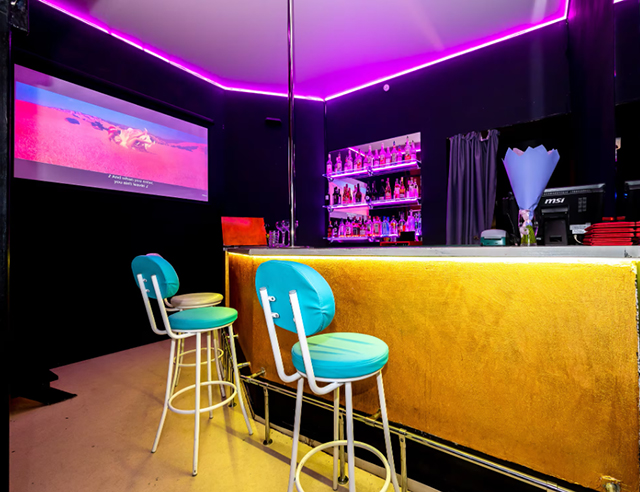 Интерьер внутри стал существенно получше. У входа рядом с постом охранника круглая железная клетка, и даже девица в ней танцевала, когда заходил. Без изменений оставили только затёртую историческую барную стойку - ну так её и не видно, если специально туда не пойти. Кстати, за барной стойкой можно курить. В зале - только кальян.