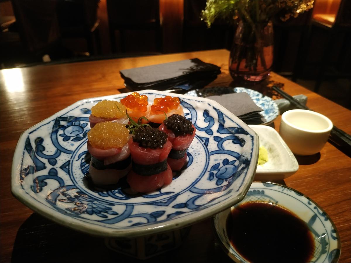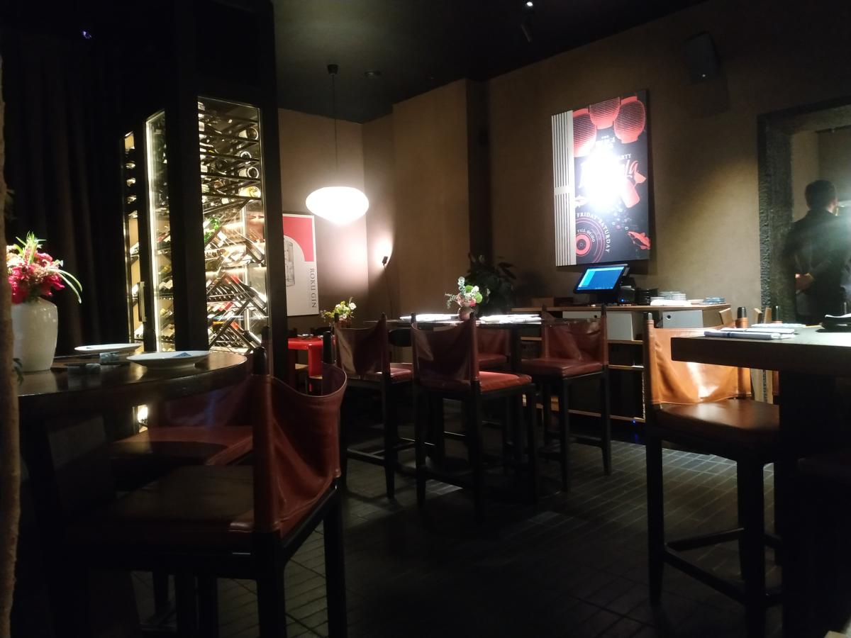 Помницо была у нас такая работница Кошочкена, с конским ценником. Так вот впервые услышал про этот супер-премиум-суши/бар именно от неё. Хвалилась как один штрих водил её туда и кормил, кабак мол охуенный. И что же, только успел сесть за стол (через 30 мин после открытия) смотрю, оно, ОНО родимое! Резиные женщины в кожаных топах и чёрных колготках, под руку с модными 30-летними полурэперами в тапках Диор. Это пару слов про атмосферу. Олицетворение данного места - рэпер, рэпующий на папино лавэ и фоткающая самаю себя эскортница с резиновыми губами, сиськами, жопой, мозгами. При входе встречает хостес, любезно помогает убрать ватник в шкаф. Свободных столов в будний день вечером - половина. Интерьеры камерные, тёмные, не очень ресторанные в классическом понимании, скорее именно барные, половина стульев высокие опять же. Делится на две зоны - барная часть и открытая кухня, где тоже можно разместиться, прям под носом у поваров, заглядывать им в их неумолимые формы лиц, со слезами на глазах и немым вопросом "ЗА ЧТО?"