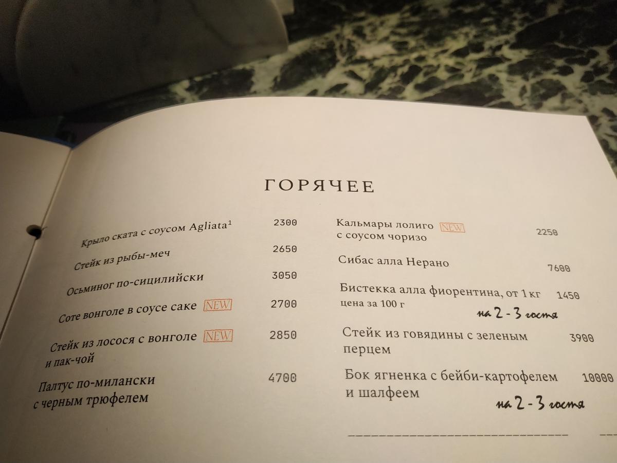 Меню- судя по ценнику- как список допов в нынешних шалманах)))
