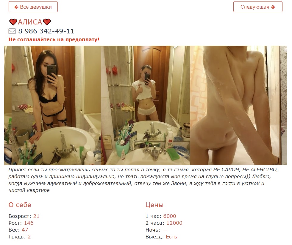 Посетил девочку. Недалеко от семьи, девочка маленькая, чуть животик, грудь не висит турчанка. Русский с акцентом. Работает в темноте хотел включить свет, не люблю в темноте, не дала, выключает, и что самое интересное, лицо прячет, за всё время что провёл, лицо видел только мельком. Ничего плохого не скажу, но и хорошего ничего нет. Просто честно отрабатывает деньги. Цифрит. Основное раскатанное, совсем не плотное, хотя и не маленький у меня. Миньет рука на яйцах, и стандартные движения вперёд назад, убрал руку, взял за голову, засадил, подавилась, чуть не вырвало. Ещё незнаю, может показалось но на кухне помоему кто-то сидел с ребёнком