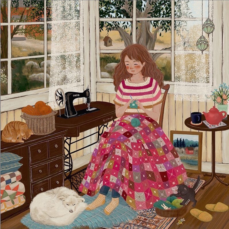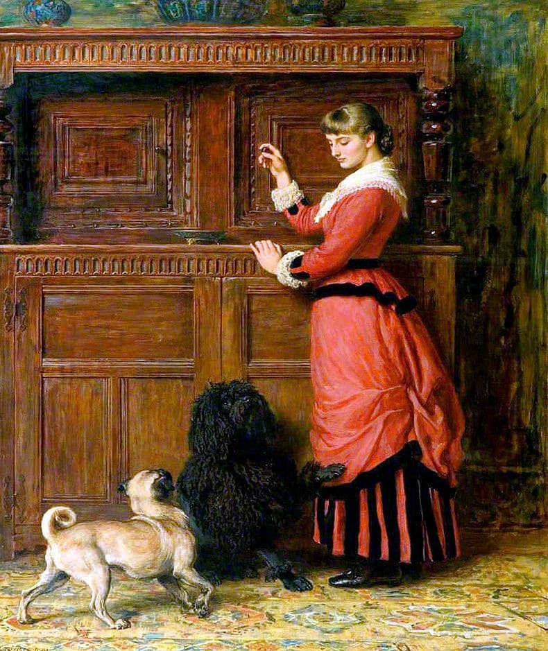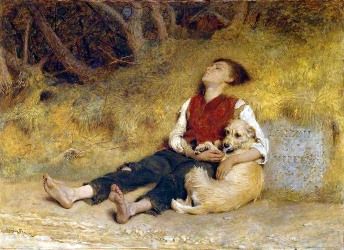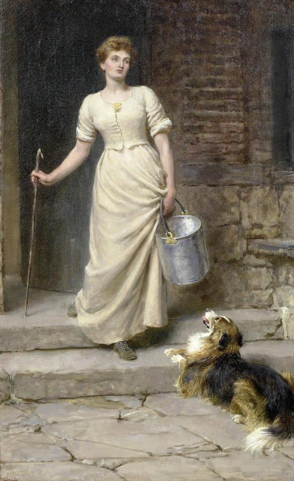 Судя по крестьянской одежде, девушка - дочь фермера или батрачка. Видимо, мечтает о том, как бы бросить крутить хвосты коровам и ковыряться в навозе и уехать в город, где настоящая жизнь...
