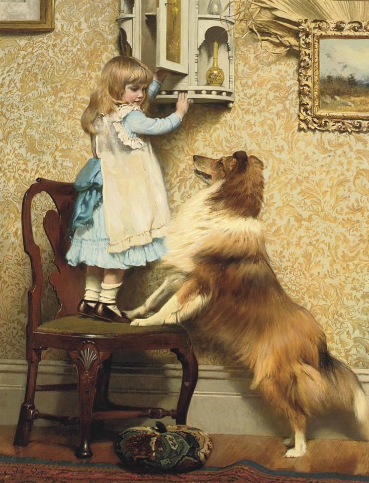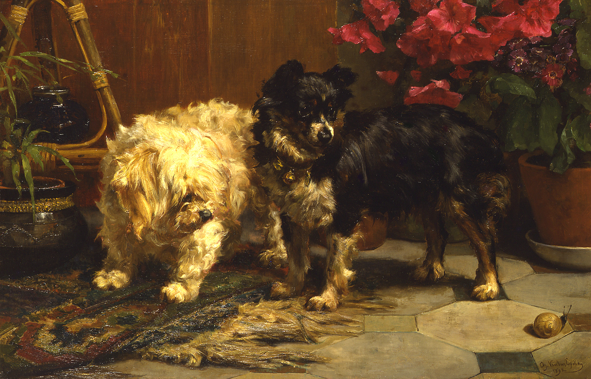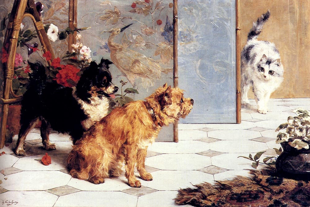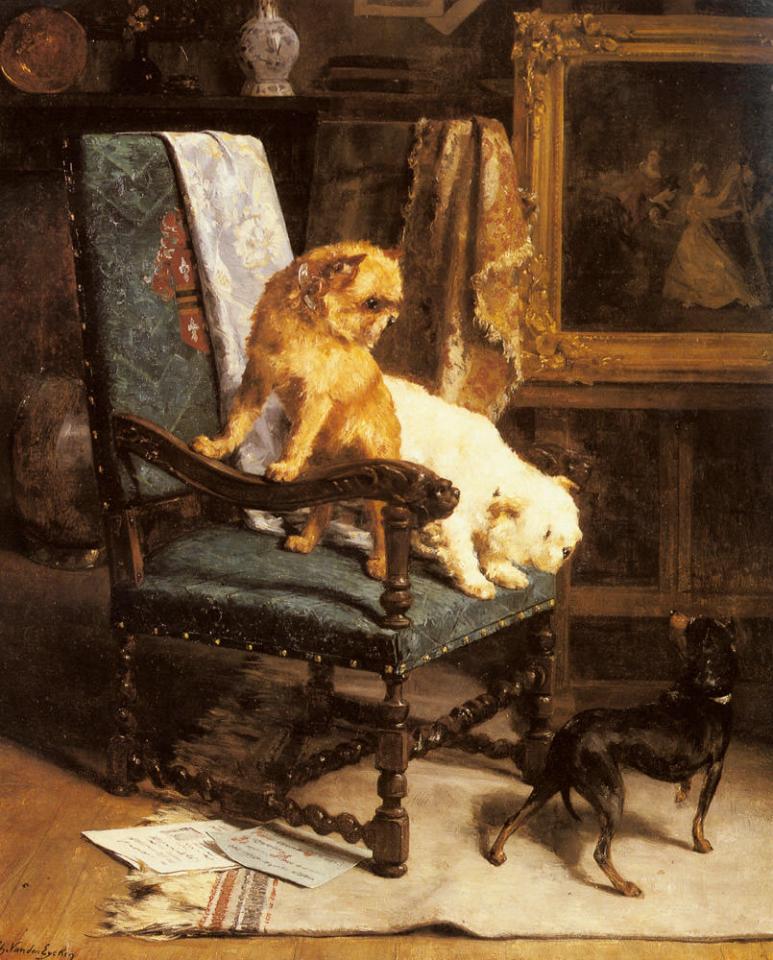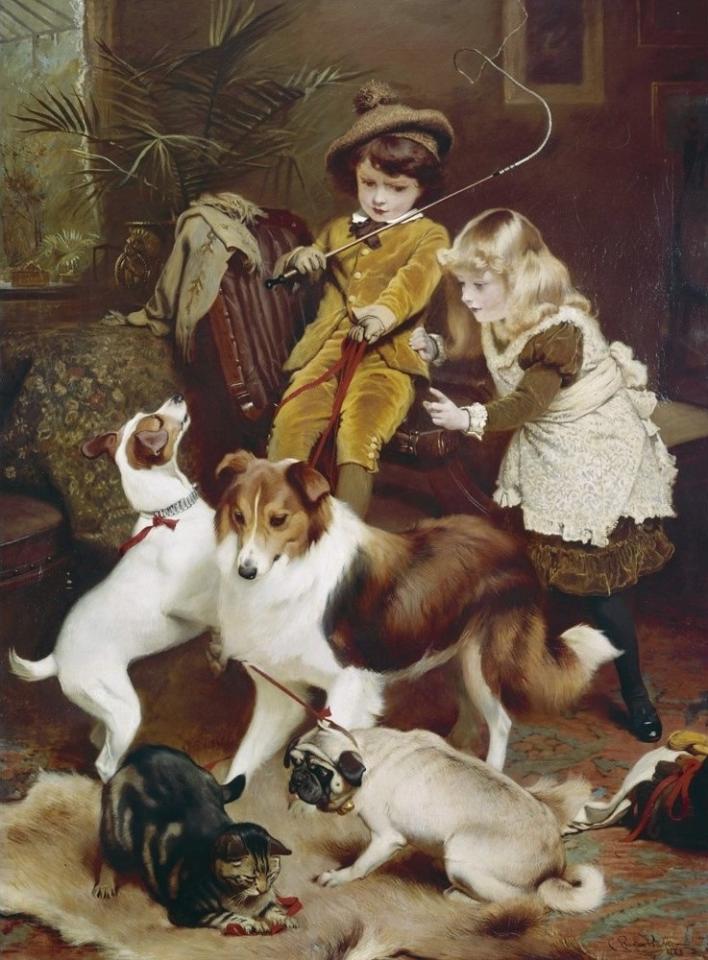 Кстати, на многих его картинах представлена та же белая с черными или коричневыми ушами порода, про которую я спрашивал раньше.