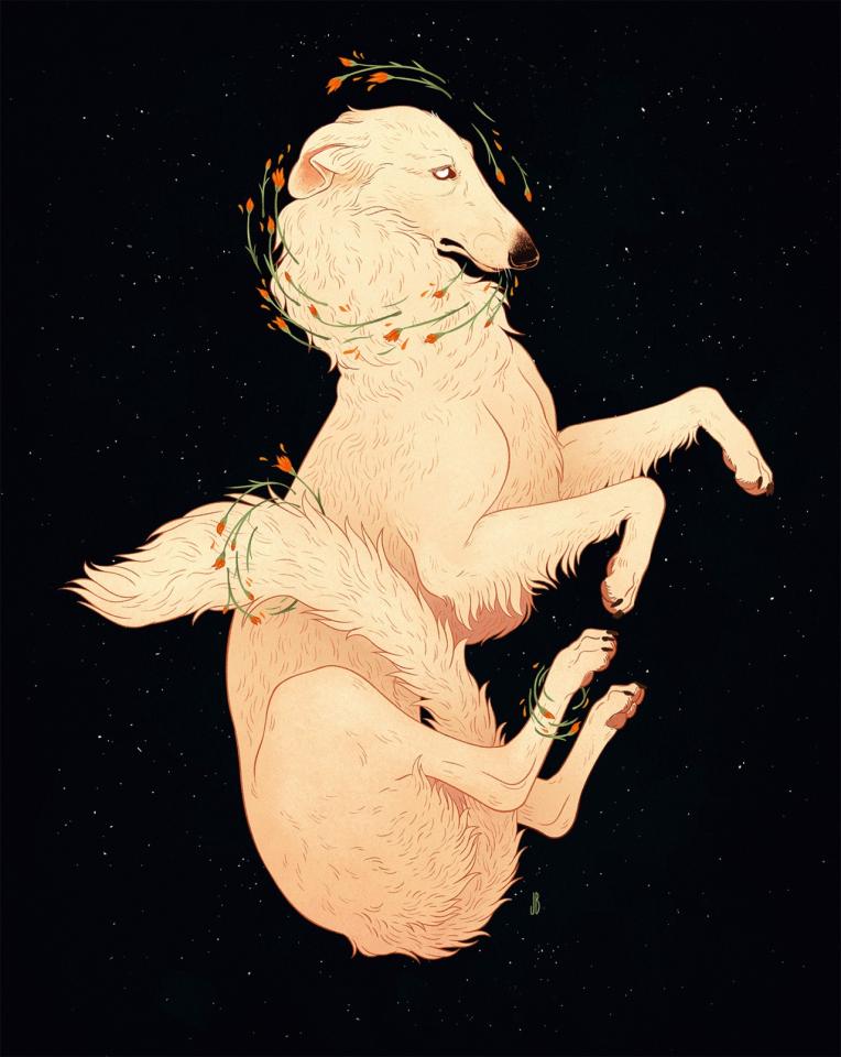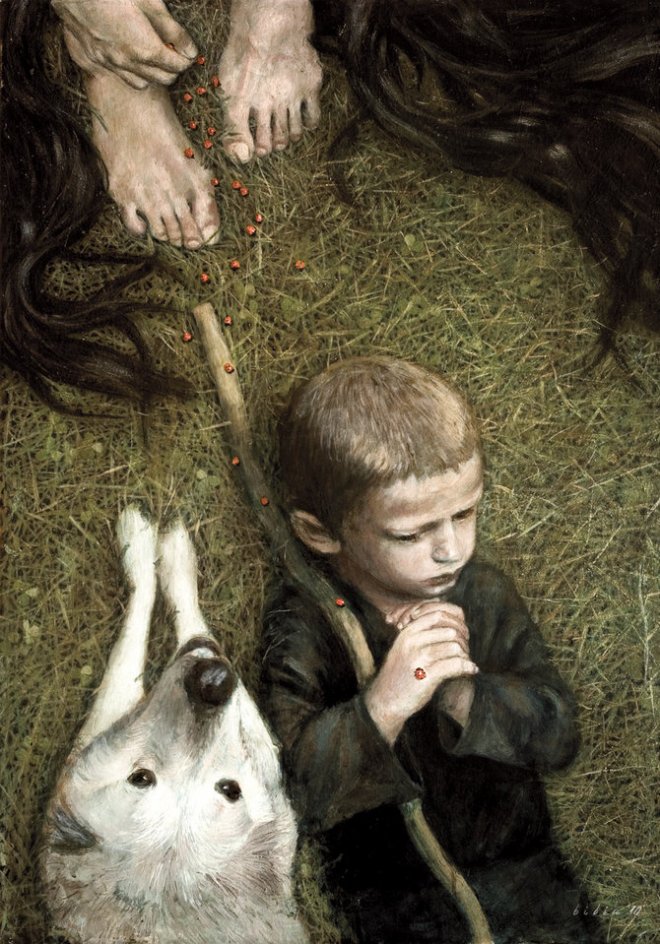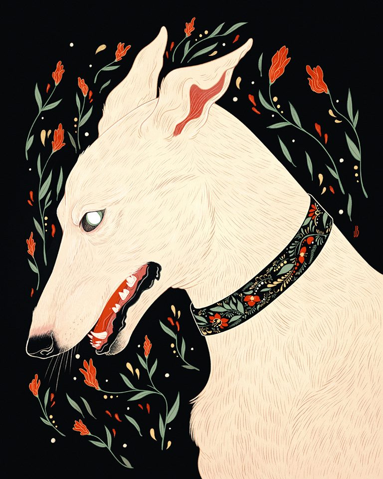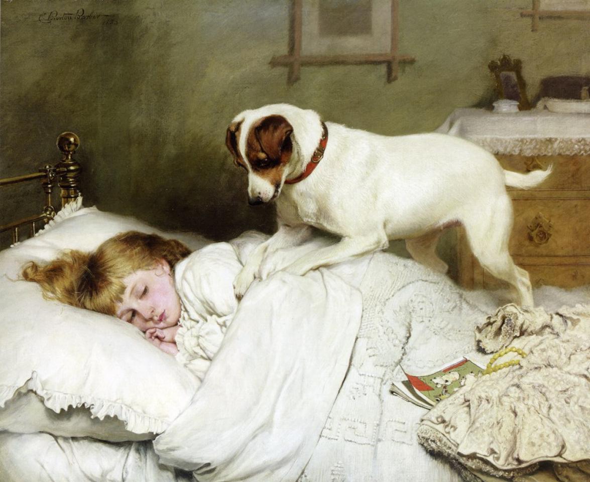 Кстати, на многих его картинах представлена та же белая с черными или коричневыми ушами порода, про которую я спрашивал раньше.