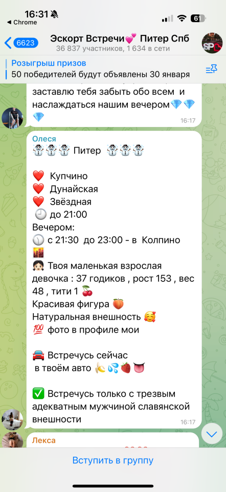 В группах по эскорту в Питере предлагает встречи в авто в Колпино