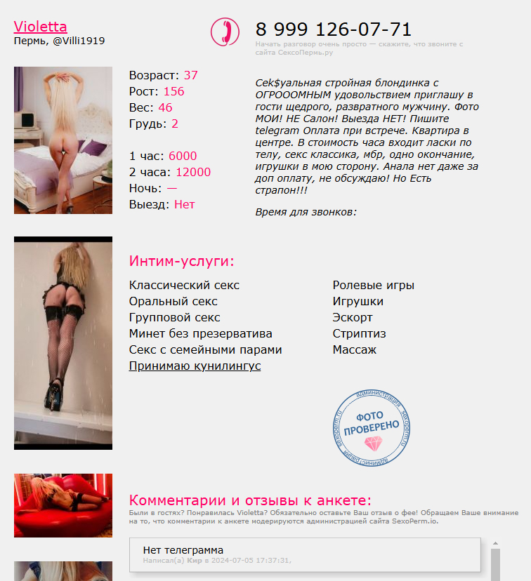 В рамках реализации плана знакомства со всеми тяночками города ростом 145-155, долго хотел встретится с данной особой. Еще с 2024 года хотелось, но цена, качество и отсутствие её в будни днем на сайте не давали возможности с ней встретится. В итоге, как то убитый после работы в пятницу увидел её в сети, вызвонил и спросил когда она принимает. Она сказала, что активна преимущественно после 22:00 в пятницу, субботу, воскресенье. До скольки утра не узнал, но вроде до 4 утра.