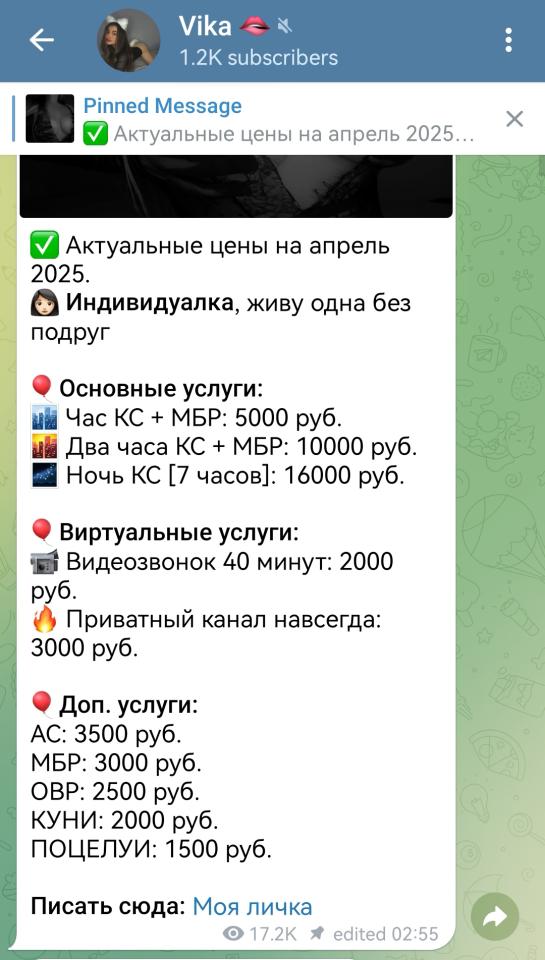 Зачем ходить по объявам в телеграм? Все шлюхи, которые пытаются хоть как-то серьезно заработать, а не просто попробовать разок, есть на РД, ну и теперь обычно и на другом сайте.