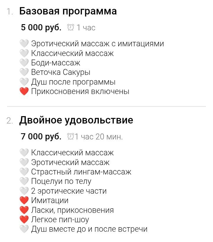 и тут первый момент который понравился - начинает меня раздевать... далее совместный душ, очень эротично и в комнату на кровать.. массаж классика, ну наверное на 4 бала.. все таки с ее весом сильно делать сложно, но расслабляет неплохо далее переход к эротике, тоже все понравилось, имитация, озвучка и тд, по окончании совместный душ - намыла как родного