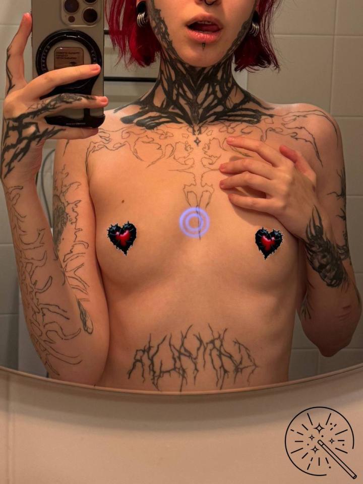Образ девахи: демонесса, приспешница сатаны, вся наглухо в татухах в стиле демонического фонка. Ну а пробраз татуажа белков глаз, конечно же Кишлак. Создатель таких нетленок как «высохшая сперма на подушке» и «я обожаю малолеток».