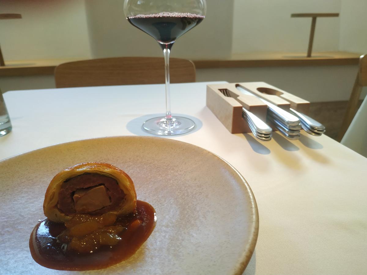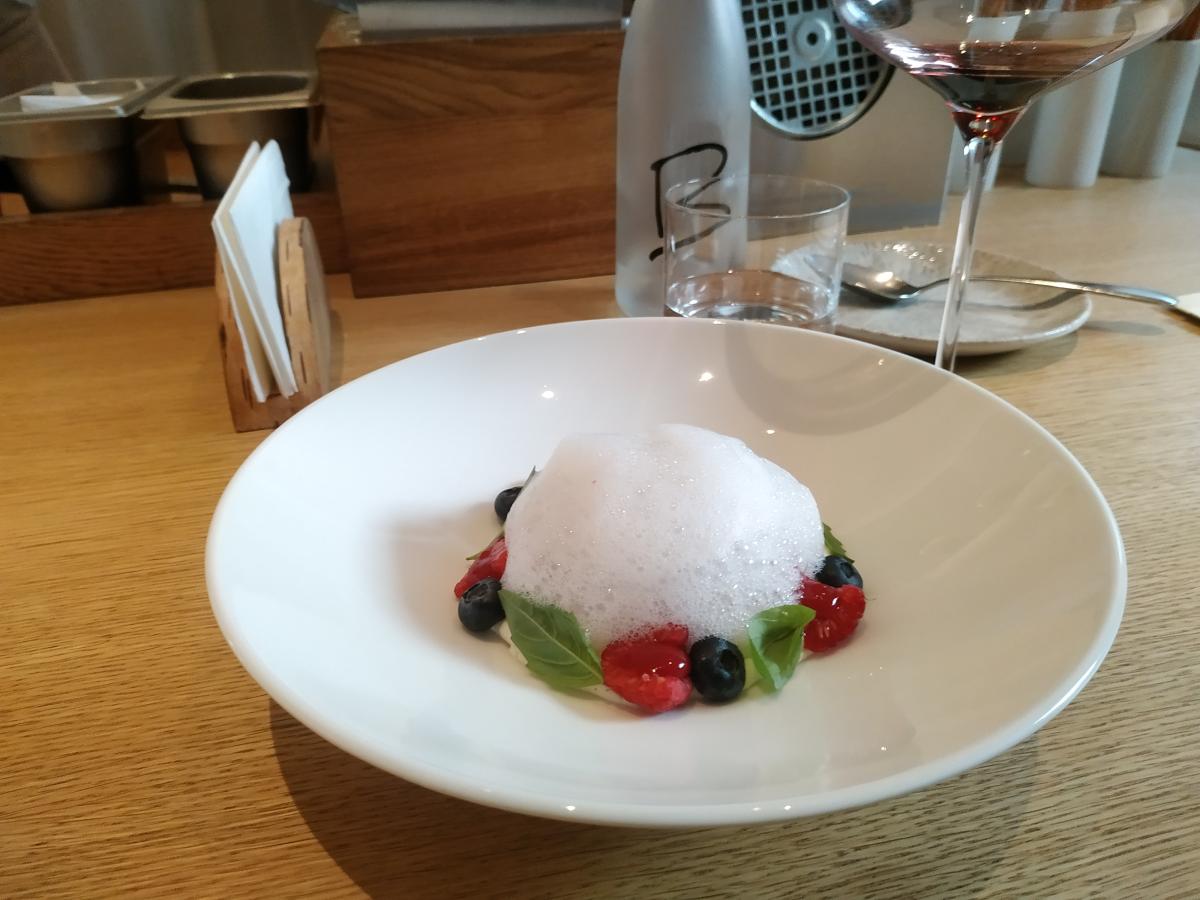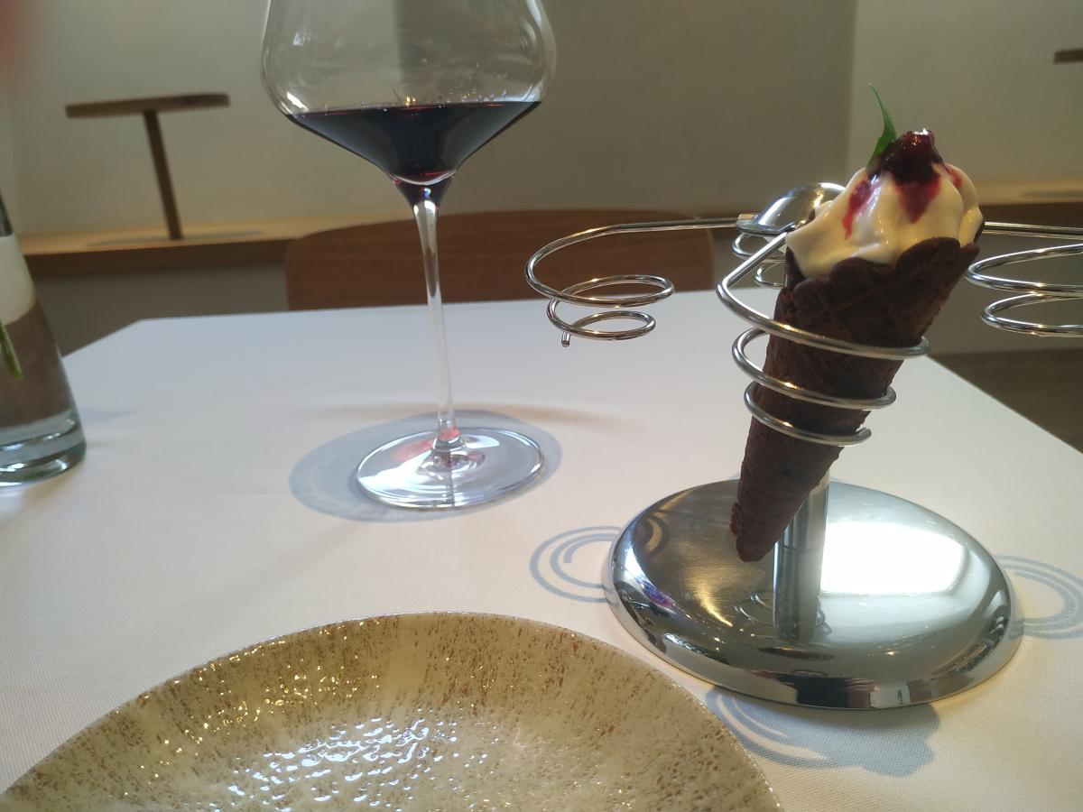 8) Пирог с уткой, фуа-гра и абрикосом. Считается основным курсом сета, перед ним подают эспумизированный сгроппино (лимонный сок+ игристое) освежить рецепторы. Не впечатлился основным блюдом. Затем принесли миниатюрный рожок мороженого с вишней и