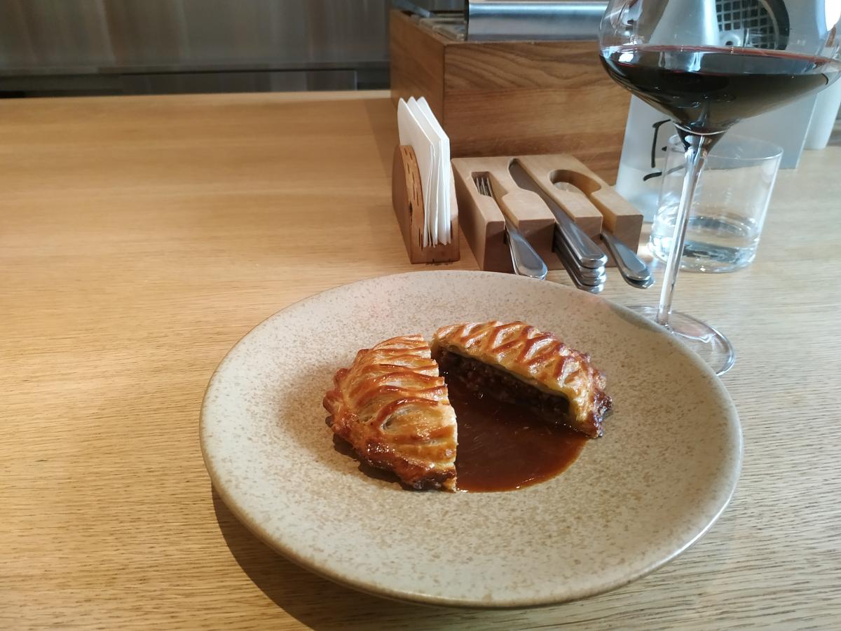 2) Пирог с мраморным ребром (590р) - скромный пирожок с соусом типа гемигляс.