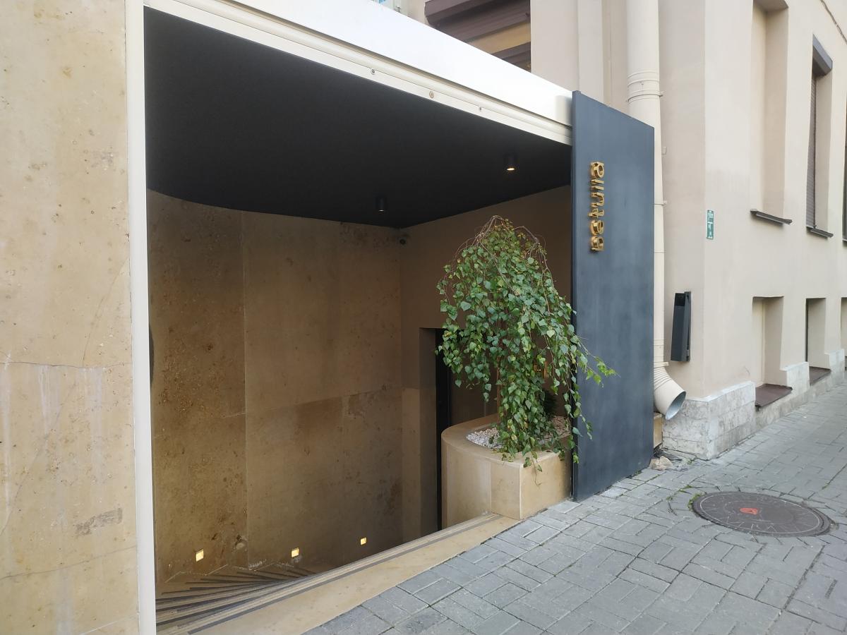 С улицы воощпе не понять, что это ресторан. Вывесок нет, есть вертикальная надпись betulla и маленькая повислая берёзка у спуска в подвал. Со входной группы видно, что это "остерия, с понятной кухней на каждый день"... 28 посадочных мест, минималистичный дизайн в серых тонах. Пространство разделено барной стойкой на две части. При входе так называемый паста-стол- общий стол со стоящей на нём паста-машиной, где в 10 см от тебя стряпчий формирует пасту, всякие сладкие шнурки и лепит равиоли. Комбайн этот периодически тарахтит и трясётся вместе со столом. Над головой у тебя висят веники из сухостоя. Основной зал с нормальными столиками, белыми скатертями и оливковым деревцем рассчитан на предоплатных бояр в количестве от двух. Расположение столиков плотное, музыка, а-ля Колбасный цех, громкая. Сортир один, с очередями. Но он хорош. Фоном идёт запить пиздежа на итальянском аки фондовая биржа, сразу вспоминается сцена из фильма "Затмение" Антониони. Кнопка смыва встроена в пол (весьма грамотное решение), ну и главное- УМНОЕ СЕНСОРНОЕ мусорное ведро!