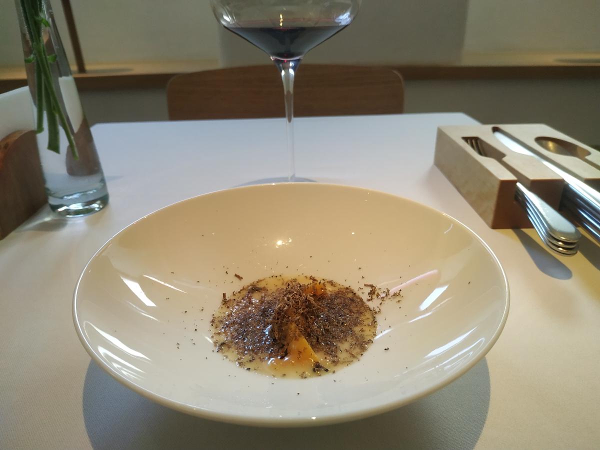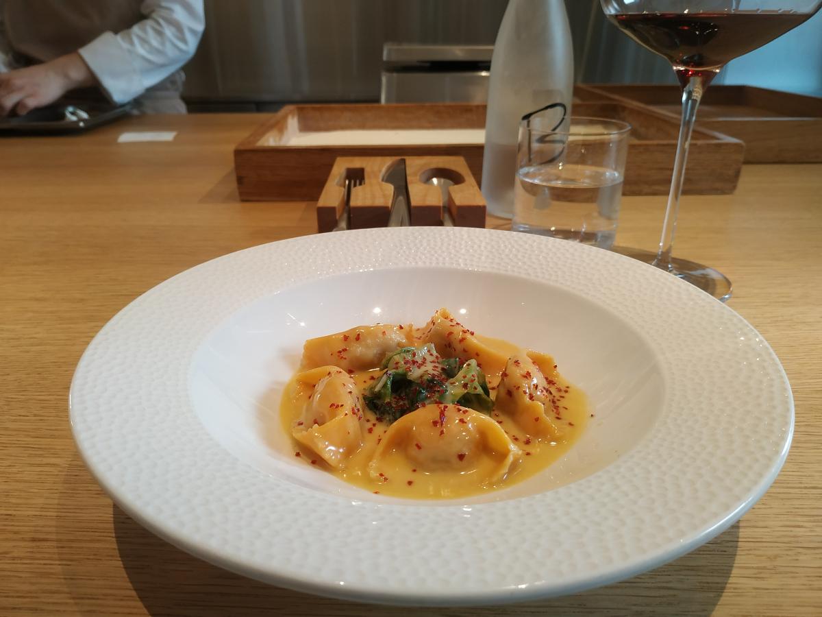 7) Равиоли с лангустинами и чёрным трюфелем. Не пошло от слова совсем. В меню (990р). Не стоит оно того.