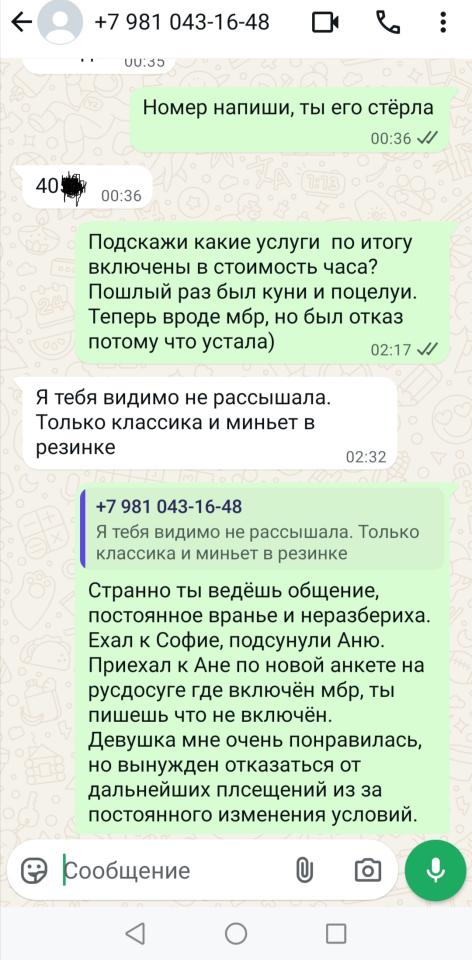 Я после работы и время уже ближе к полуночи, начал просматривать тг канал своих салонов которые уже давно посещаю в целях избранницы для проведения дел потешных. Поскольку ну конечно же всех самых ярких дев давно расписали, то я остался ни с чем. Просмотрел все анкеты на рд увидел давно добавленную девчюлю по имени Софа.