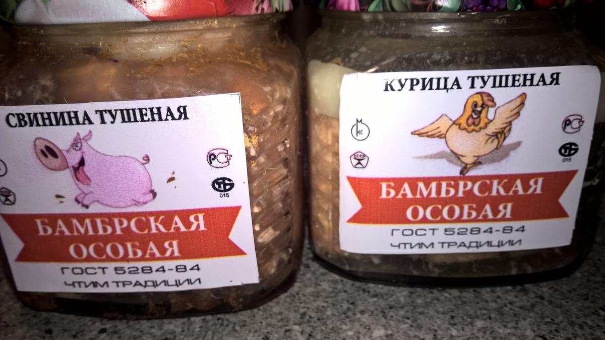Это подделки злопыхателей. Настоящая тушёнка от Бамбрса вот (дизайн этикетки от Комедианта):