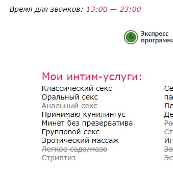 А она работает сейчас? На МассажХХХ ее анкеты последнее время не видно. Нужно добавить, что она практикует возрастной ценз клиентов - до 40 лет