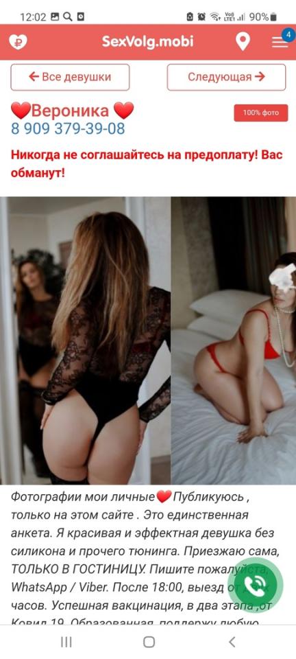 У нее две анкеты на секс Волг - Полина - 5000-это эротический массаж +минет и Полина дорого - 12 000 - это секс . Девица в общении немного грубовата, но на внешность хороша - большая красивая грудь, на лицо симпатичная , присутсвуют немного тату. Массаж так себе, но минет плюс красивые сиськи решают. Можно сходить на массаж заценить , а потом уже подумать насет секса. 12 000-это цена космос, но хотя бы понятно за что платишь - за красивое лицо, фигуру и сиськи. У Вероники ничего нет этого.