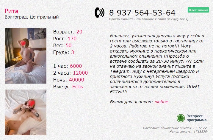 ТТХ примерно соответствуют, но грудь показалась поменьше, год рождения в ВК указан 2000. Молодая, симпатичная. Фотографии её. Есть татухи, в том числе на лице и животе. Соски с пирсингом. Фигура стройная, на ощупь приятная. Не целуется.