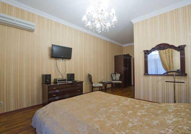 Each room is equipped with one big bed, TV set, DVD player, telephone, air conditioning, armchairs and other furniture. Wi-Fi zone in every room.