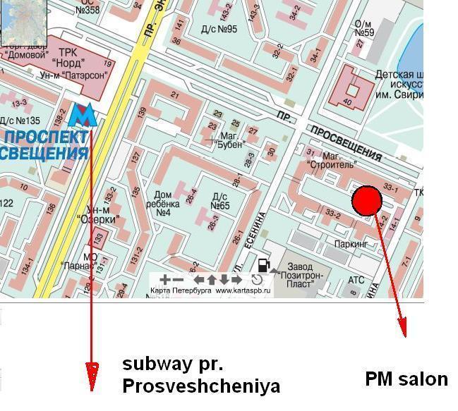1. Lesnoi ave. (in a cross to komissara Smirnova str.), close to Finland Railway Station