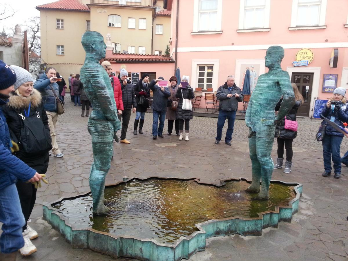 С целью привлечения внимания к выставке музея Франца Кафки во дворе музея был специально размещен фонтан : Памятник писающим мужчинам, который является прямым отголоском брюссельского фонтана писающего мальчика.