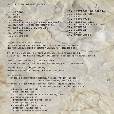 На двойном CD издан альбом "Тел. 1979-1994. Претензии не принимаются". 20 песен. Своего рода The Best 1979-1994. Большой буклет (16 страниц) с воспоминаниями Олега Ковриги о Свине. В качестве бонусного диска - сингл "Оуречный лосьон" с песнями в "танцевальных ритмах" (2 из них издавались в кассетном варианте) и радио-интервью.