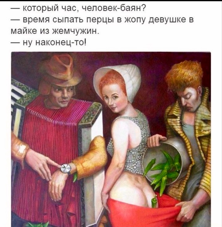 Ага, а грустный он от того, что хоть и есть перчик в штанах, а всыпать его в зад девушки не может, потому что на полшестого, о чем недвусмысленно дает понять остальным участникам мжм)