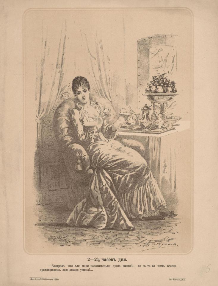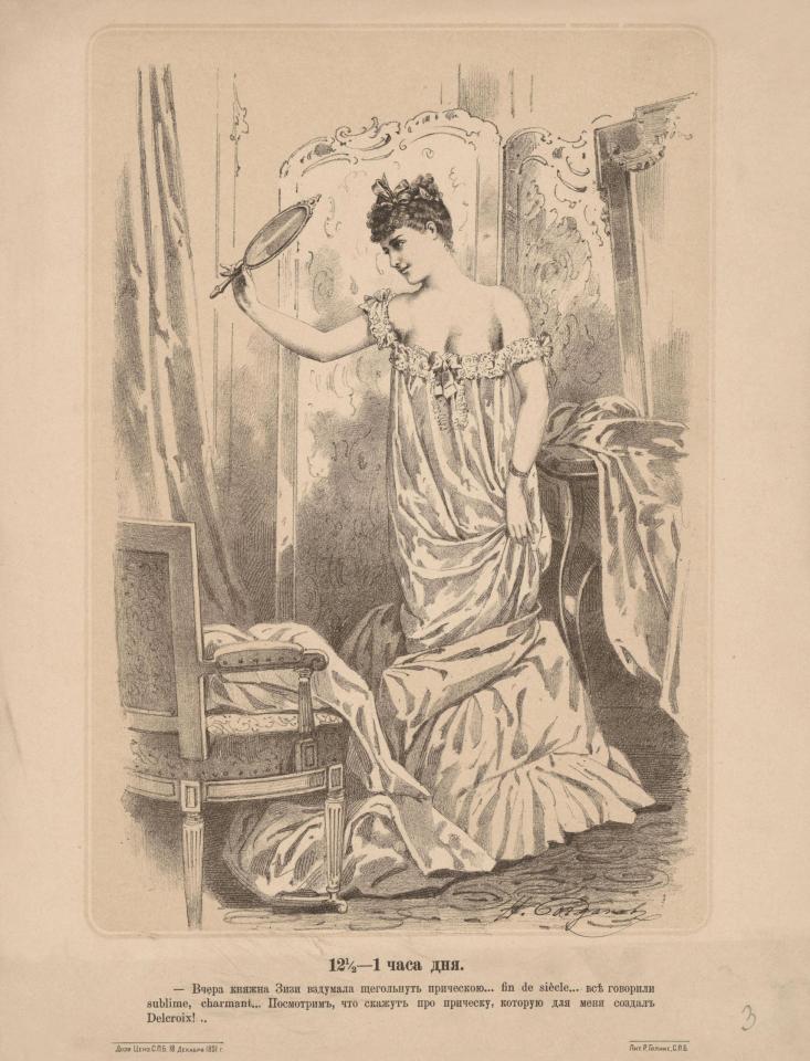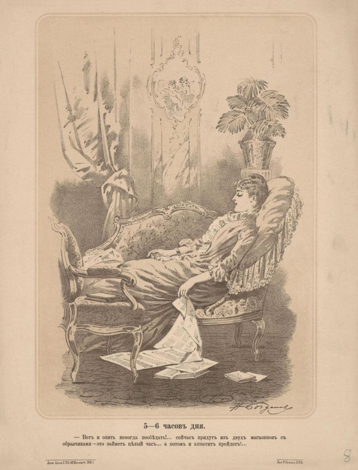 Так, в 19 веке не было слов "Инстаграм", "комикс" или "продакт-плейсмент". Однако это не помешало художнику Богданову нарисовать комикс из жизни инстаграммщицы конца позапрошлого века.