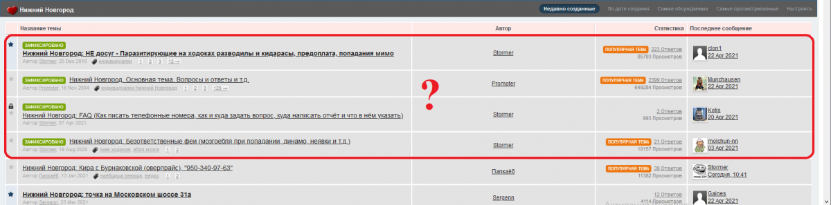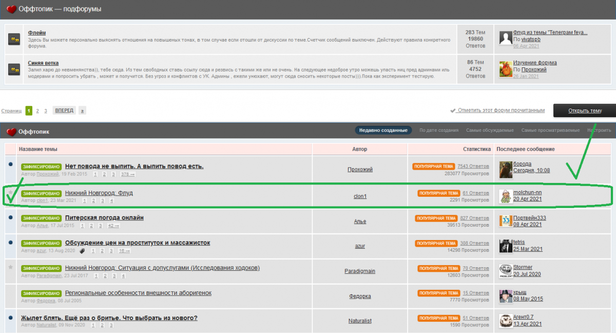 - Тема «Нижний Новгород: Флуд», физически нахадясчяясо ф "Оффтопик", и фпрямь закреплена