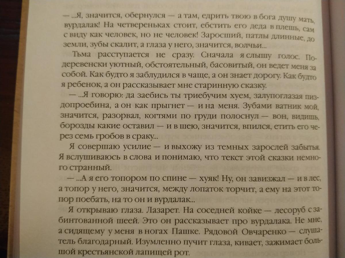 Наверчено хуйни будь здоров, сразу и не разберёшь что к чему. ГГ - беглый зэк, он же бывший циркач, он же чудо экстрасенс "в спячке", как выясняется. Появляются лисицы-оборотни, злобесовы хуепутоловы из отряда 731 пытаются в своих лабораториях добыть из жоп оборотней красную говноварь и с её помощью оживить терракотовую армию (армия у них в лесу зарыта), рижский нацик Борон фон хочет захватить мир, лисицы хотят чтобы с них снял проклятье древний мастер колдун! Вся эта дикая говноварь растянута на 716 страниц. Но написано неплохо. Читабельно.