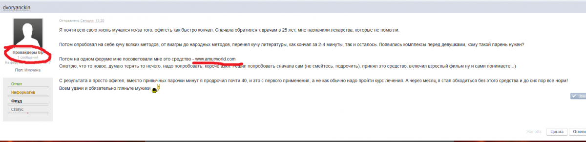 С результата я просто офигел, вместо привычных парочки минут я продрочил почти 40, и это с первого применения, а не как обычно надо пройти курс лечения. А через месяц я стал обходиться без этого средства и до сих пор все норм!