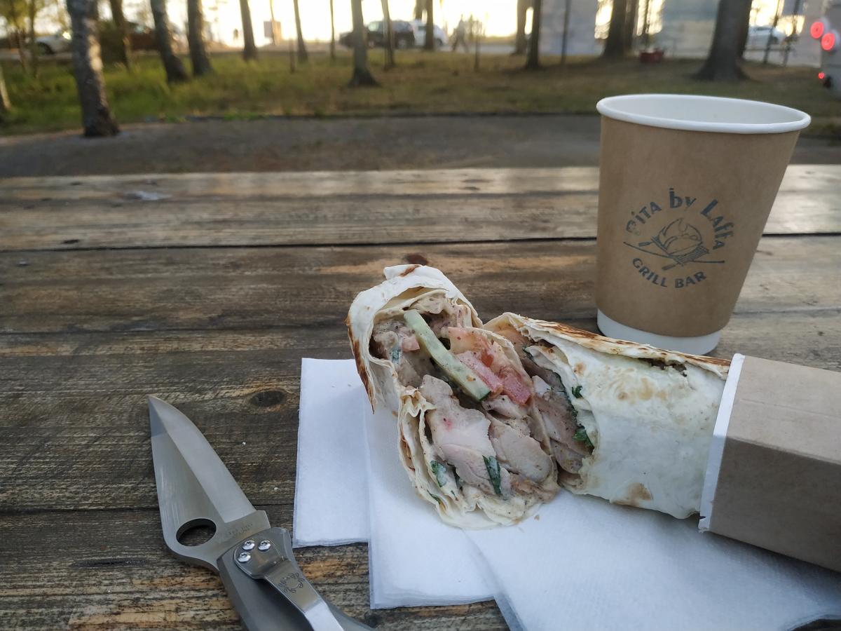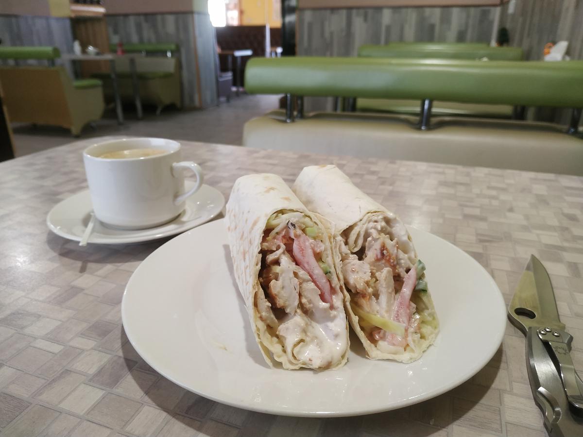 Заходил отведать обычную классику в лаваше (около 350гр) и + кофе.