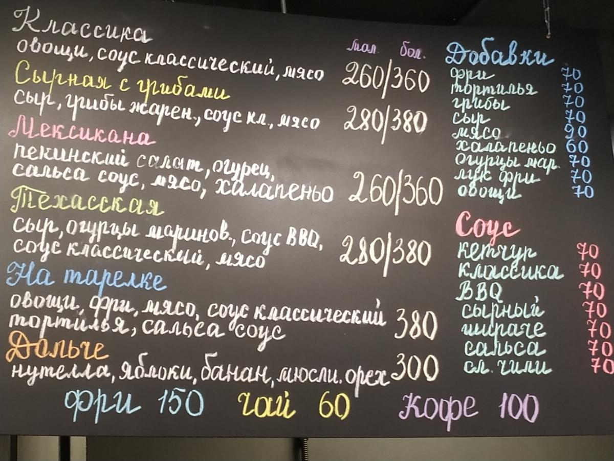 Я брал шаверму Asia с курицей терияки, 239 руб. Неплохо, хотя лаваш слега пересушен и жестковат и соус можно бы менее сладкий.