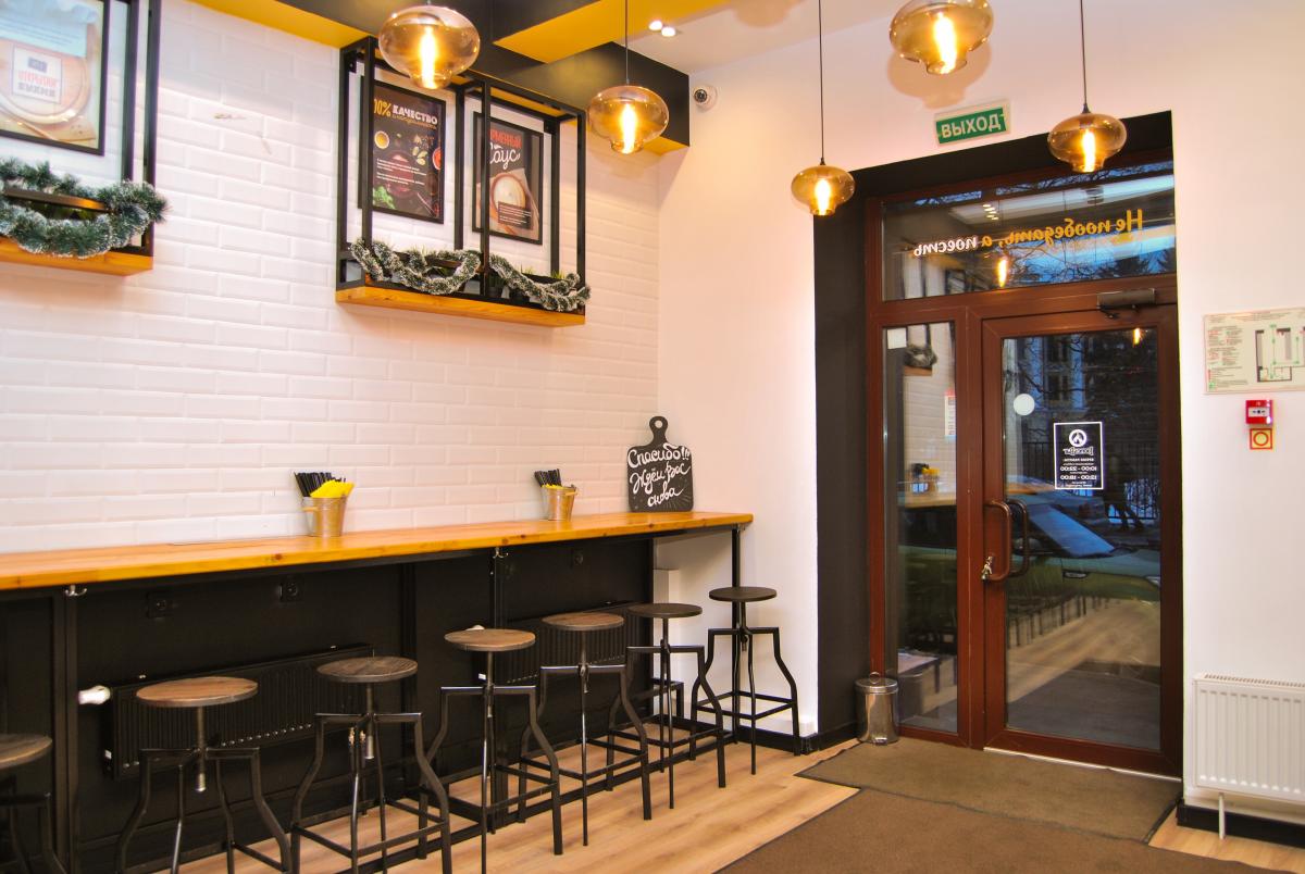 Народ в основном на вынос берёт, для этого и окошко прямо на улицу есть, но можно и там похавать, без особых удобств сидя на высоком барном стуле за длинным столом.