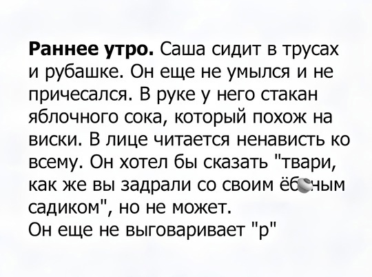 После этого он молча достал бутылку, 2 рюмки... Налил и начал рассказывать, как я его заебала ...