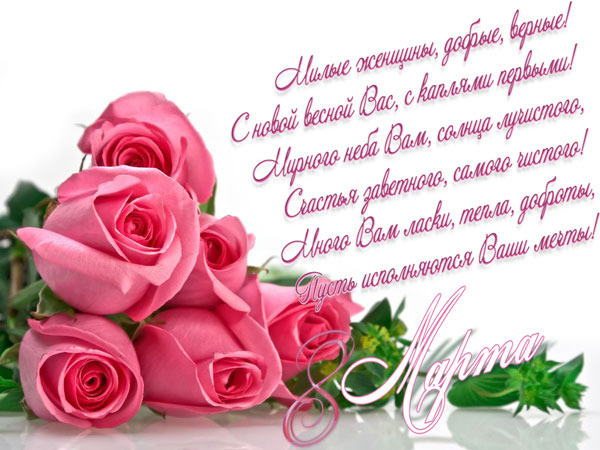 Каждой женщине надёжного мужика,если много выпьет,чтобы до дома донёс не только 8 марта!)))