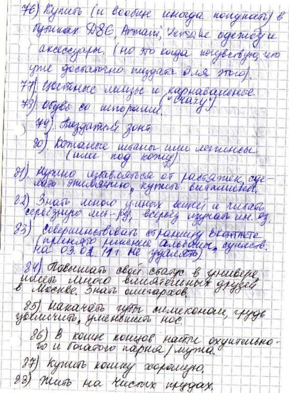 охуительный 89 пункт: "сделать зубы"......кстати, не Полины из Города грехов конспект пизданули? или у кого из Рыбных? чего-то там ни про халат, ни про тапочки - ни слова?