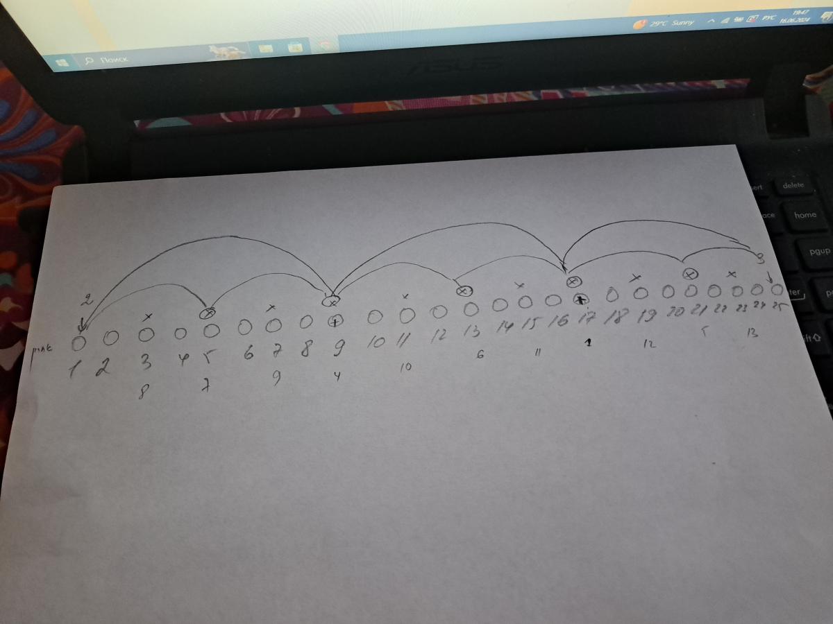 Первое впечатление: на 13-е место ровно посередине, затем 1-е и 25-е. Но чую - что-то не так.