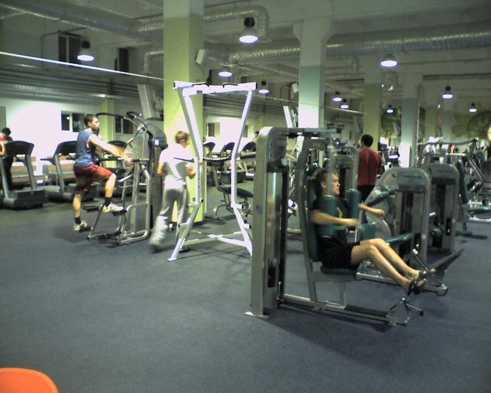 зал большой,высокие потолки,по этому не душно как во многих заведениях.Большие раздевалки,народу не так уж и много единовременно,по этому без толкотни все проходит.Для детей есть комнатка,так что папаши и мамаши могут быть спок за чадо:)
