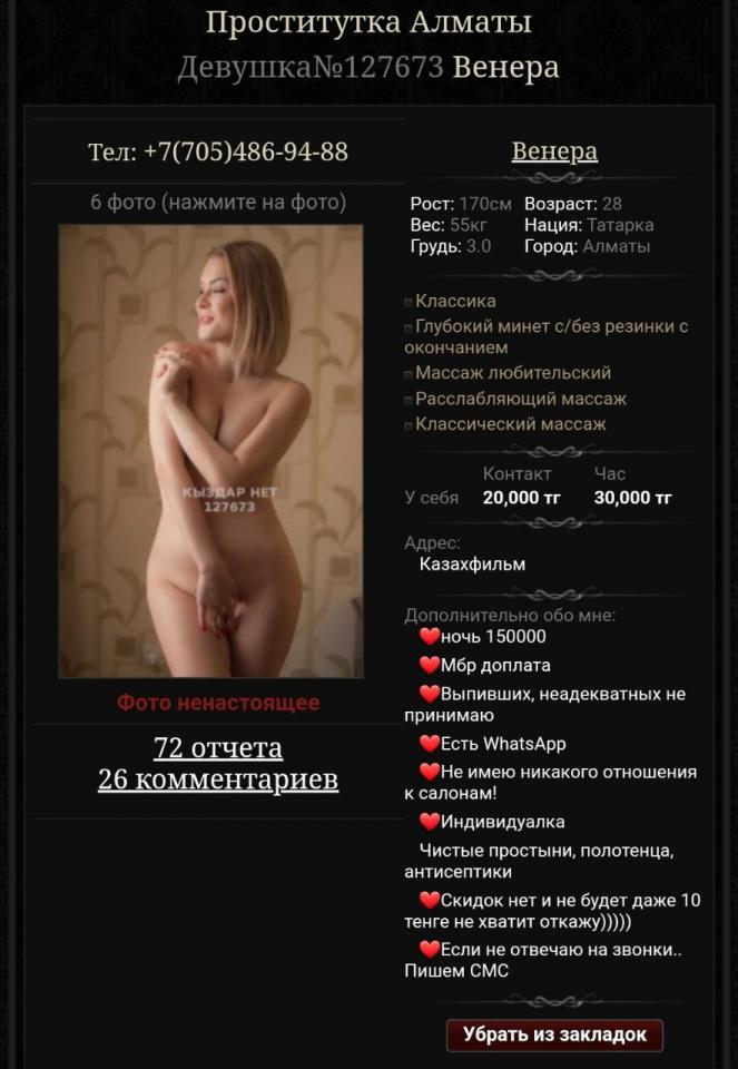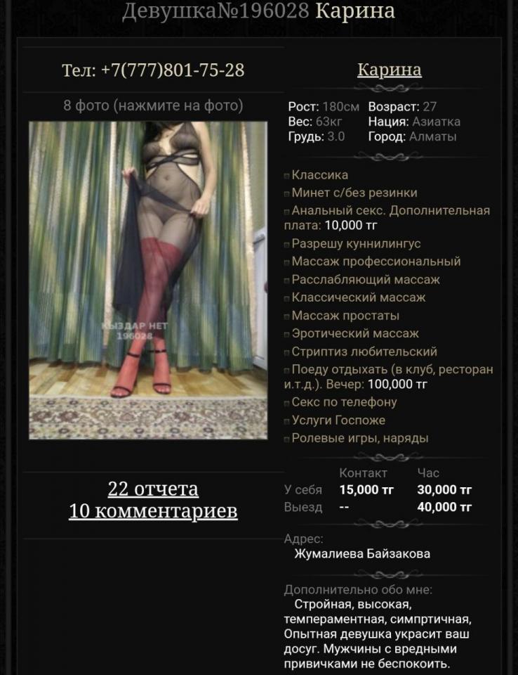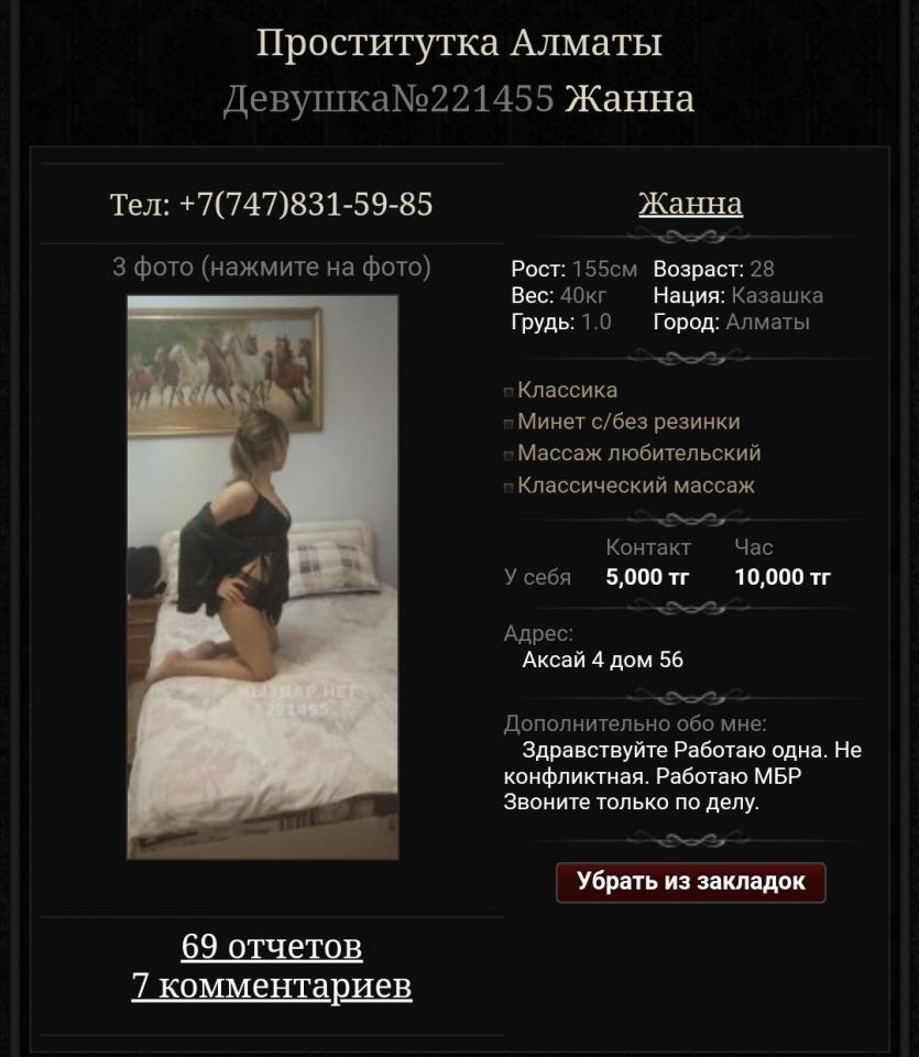 Раздел Досуг. телефонов штук 50 разных. Цены от 5000 до 12000 тенге за час.в основном на выезд. привозят таксисты..контингент разный...