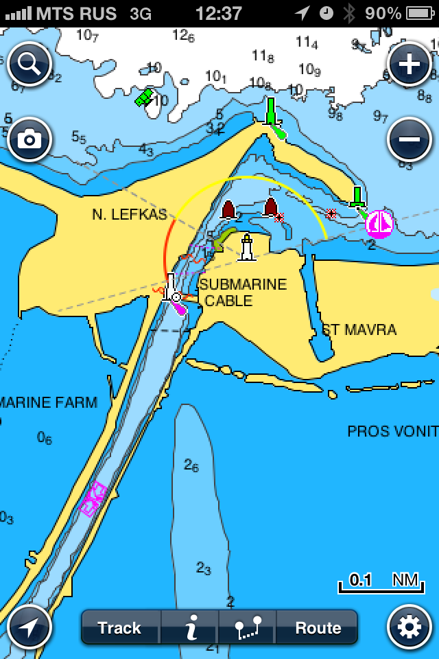 Здорово выручил iPhone4- этот кусок недавно лично проходил на яхте руля именно по нему.