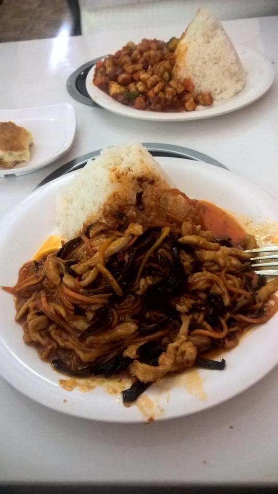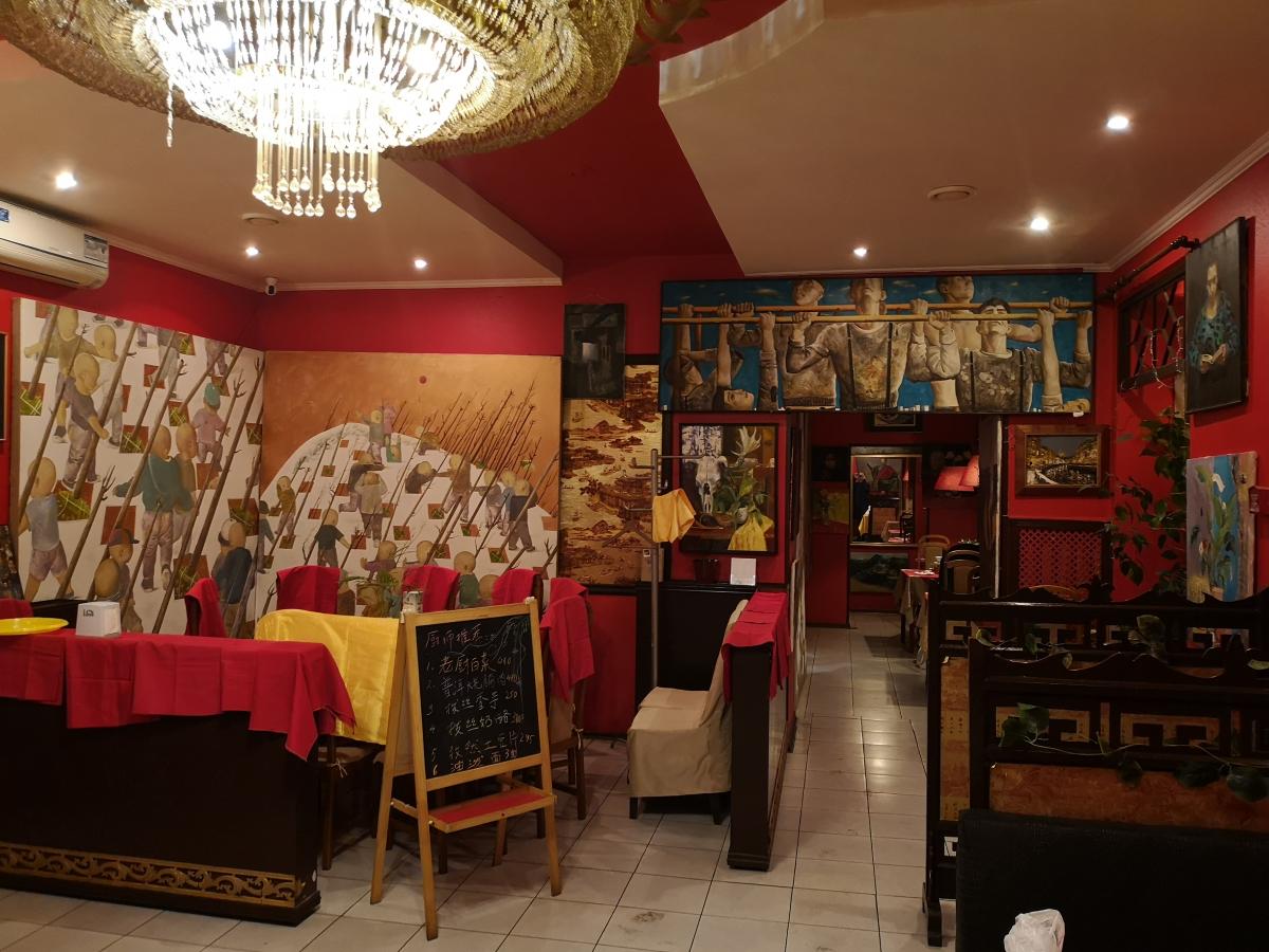 Это длинный такой корпус, а кафешка эта находится на первом этаже поперёк здания. Поэтому два входа на параллельные улочки. А про вывеску ничего не могу сказать. Меня туда китаец притащил, а потом я уже знал, куда идти. Есть, по-моему, какие-то красные китайские фонари. Не в смысле бляцкого квартала, а в смысле китайской жратвы. Извиняюсь, нарисовал, как мог...
