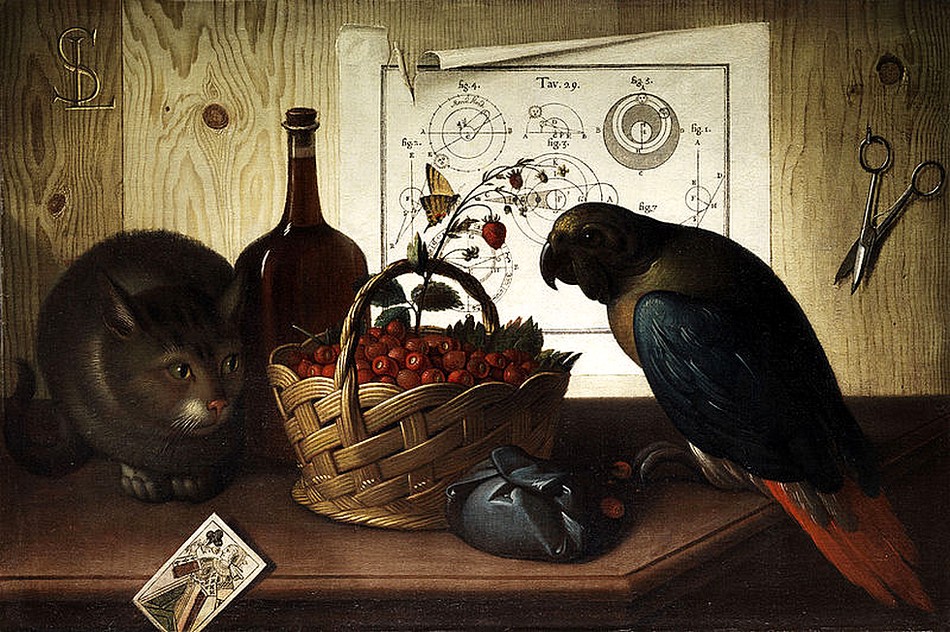Себастьяно Lazzari Натюрморт с кошкой и попугаем, 1730