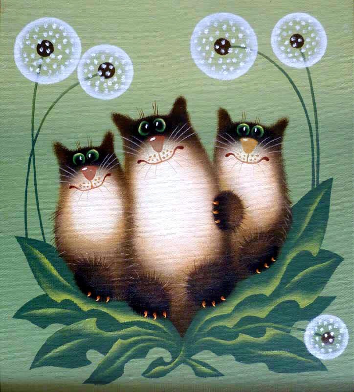 У неё картин про котов - ну больше ста штук точно. Особенно доставляет серия "Коты и ангелы".