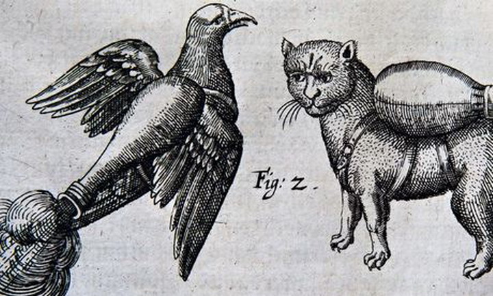 Иллюстрации из руководства для артиллеристов, датируемого примерно 1530 годом, демонстрируют кошек и голубей, облачённых в ракетные ранцы. Немецкий текст рядом с ними рекомендует военным командирам использовать их для поджога замка или города, куда невозможно попасть другим путём.