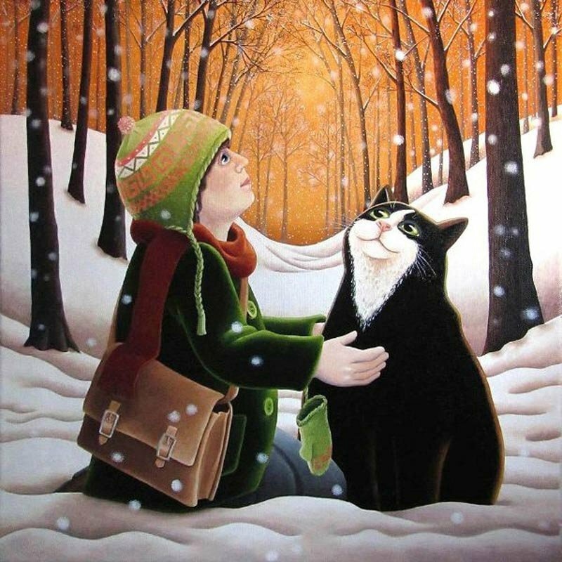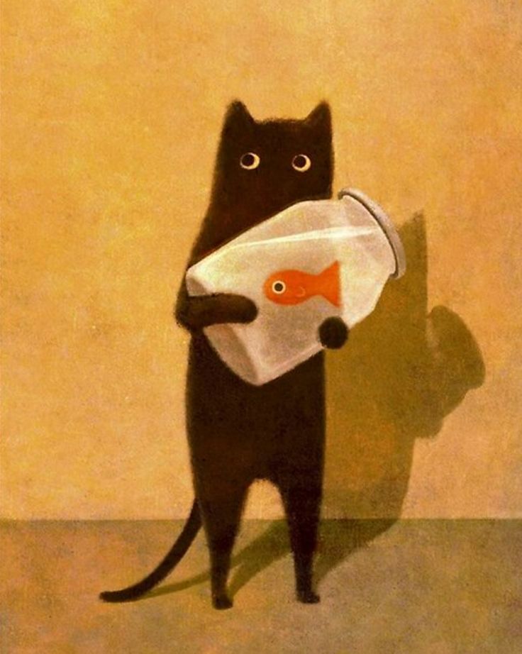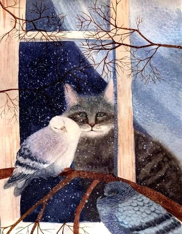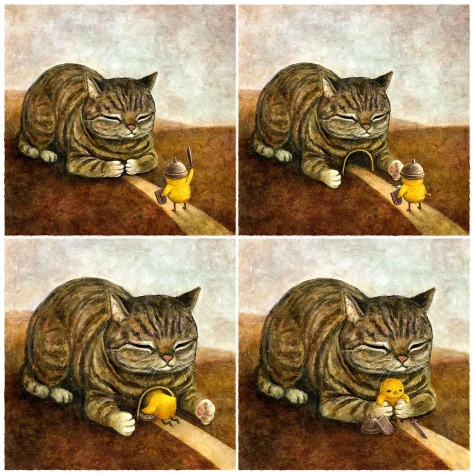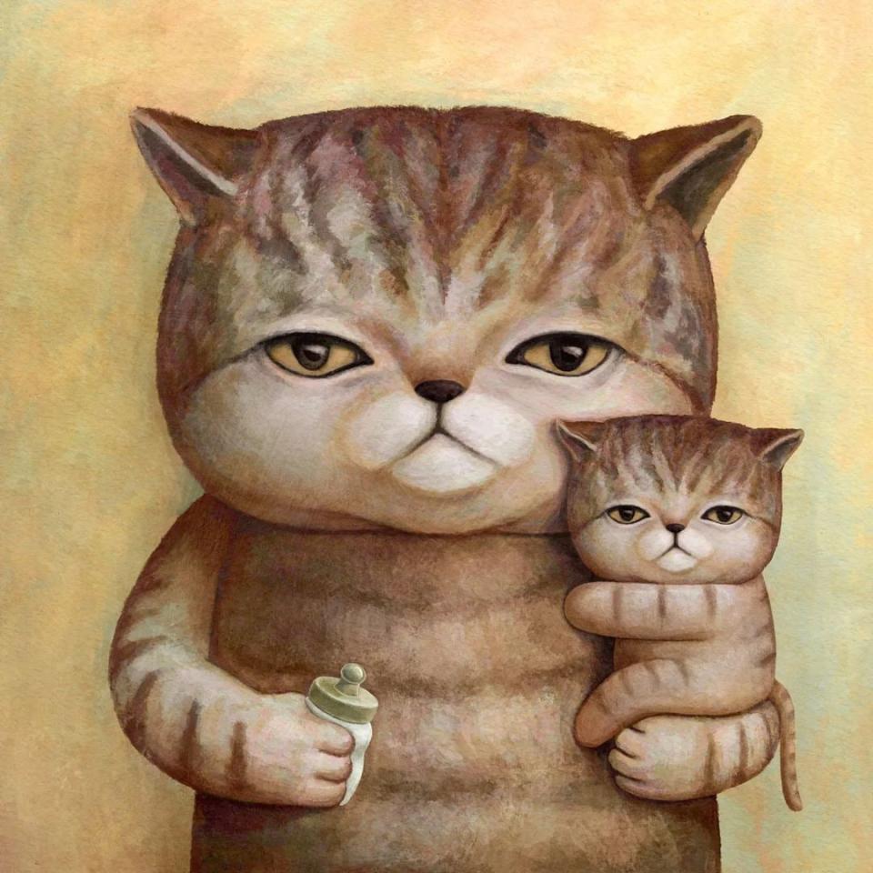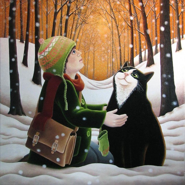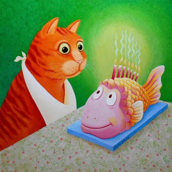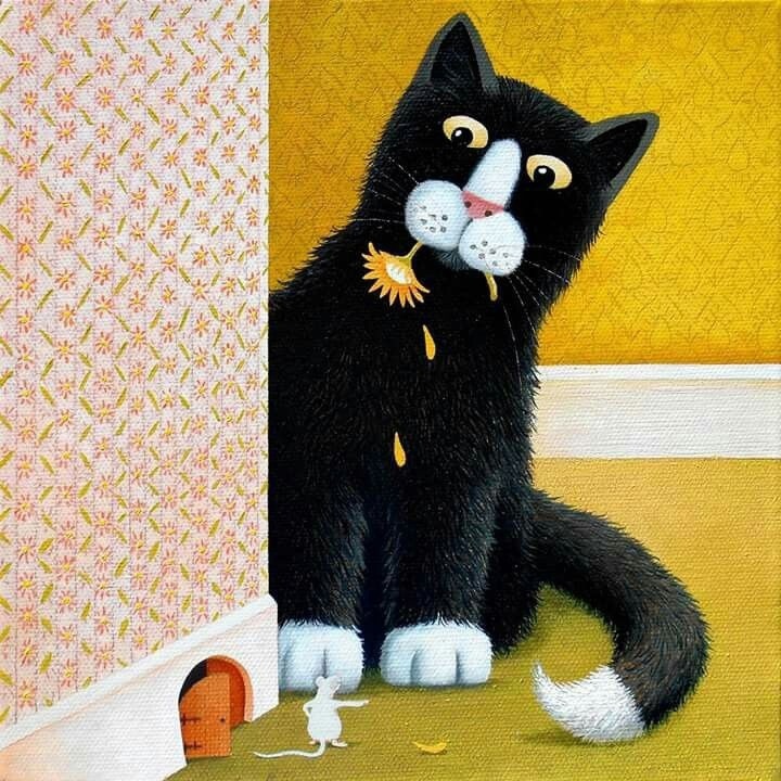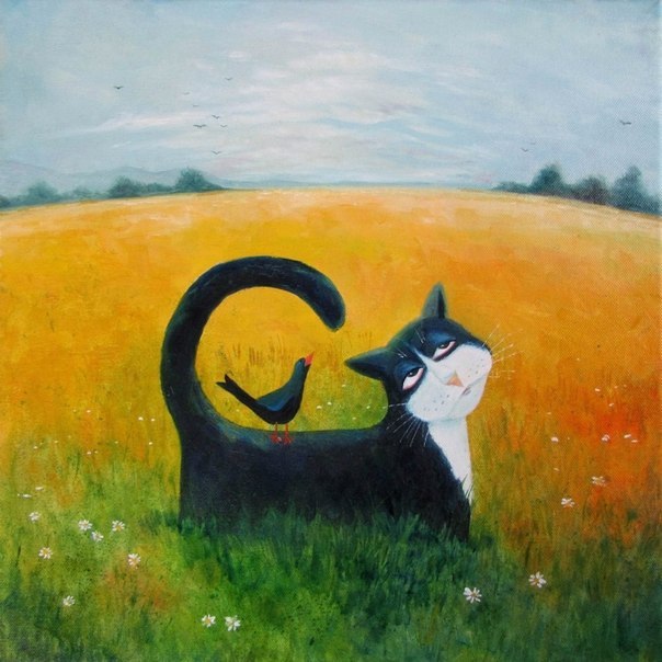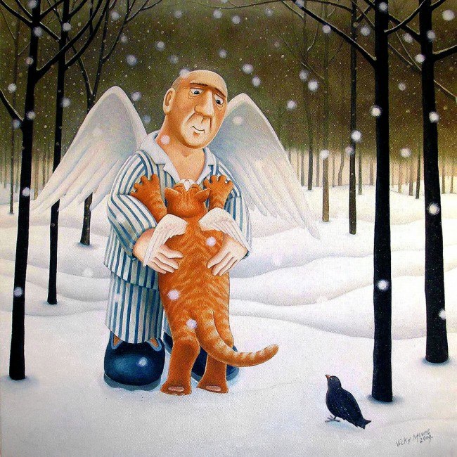 Именно на основе картины Vicky Mount сделано достаточно известное в интернетах изображение кота с попкорном: